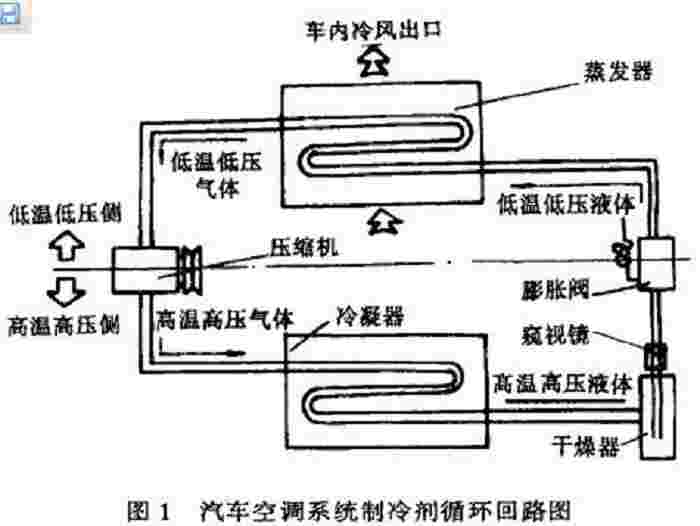下面來看看汽車空調(diào)制冷系統(tǒng)工作原理圖